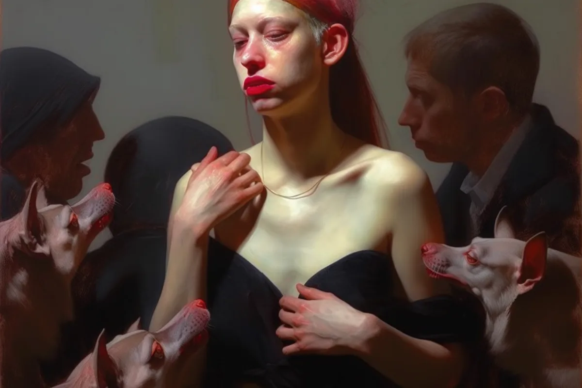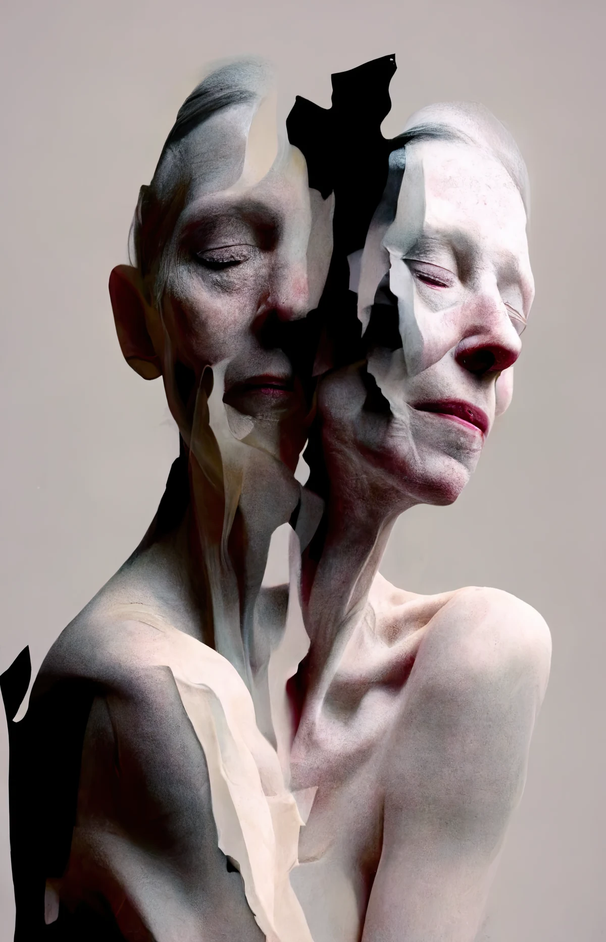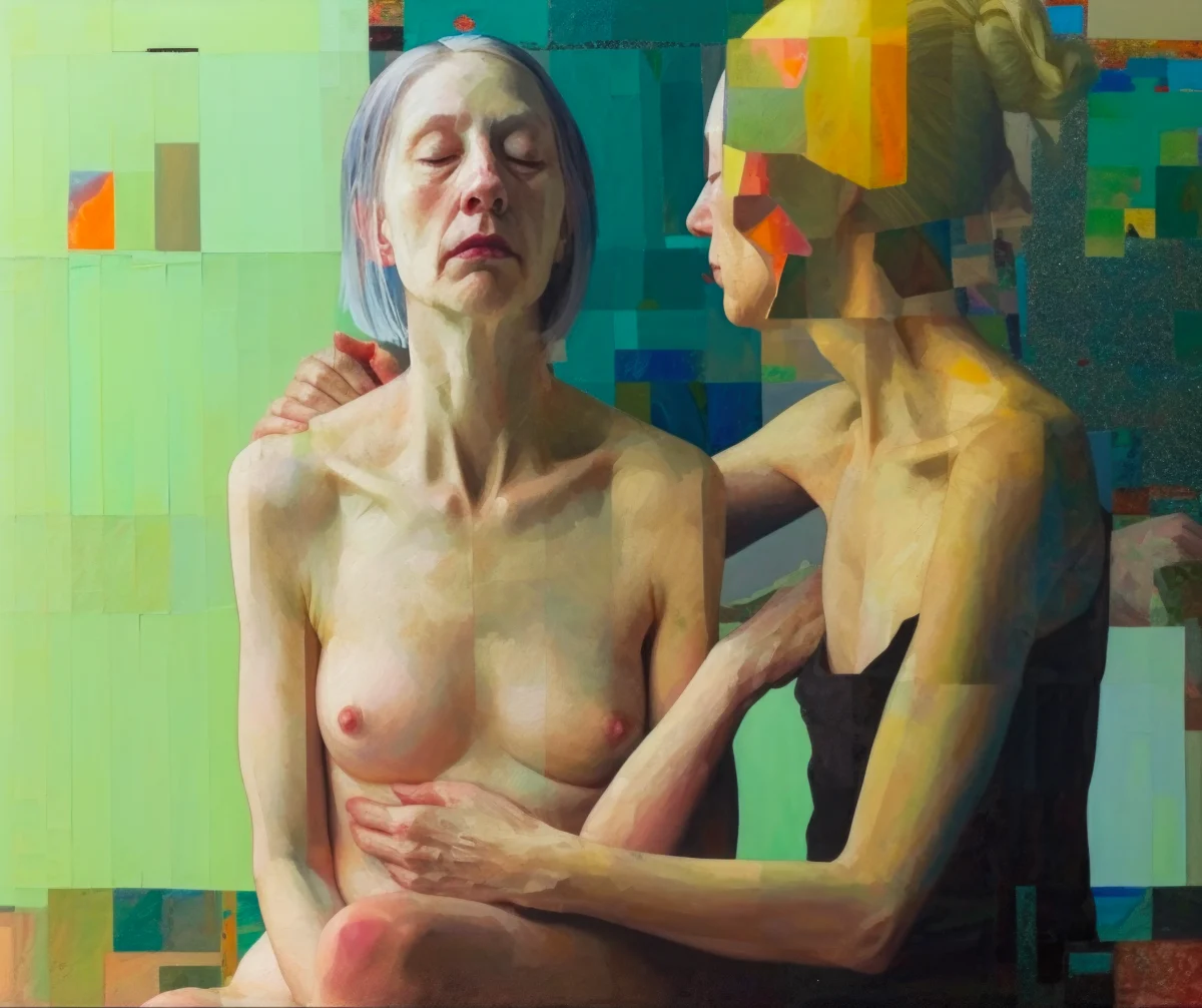 Dutch artist Francien Krieg (1973) from the Netherlands graduated from the Royal Art Academy in The Hague in 1998, obtaining a degree in Monumental Art, which brought her to think conceptually and she discovered her fascination for the human body. Francien Krieg expressed her thoughts in these academic years with meat installations and human skins made of rubber. She is a figurative painter for more then 20 years now and recently started to work with AI art.The red line in her work is the power of vulnerability and the transcience of life.